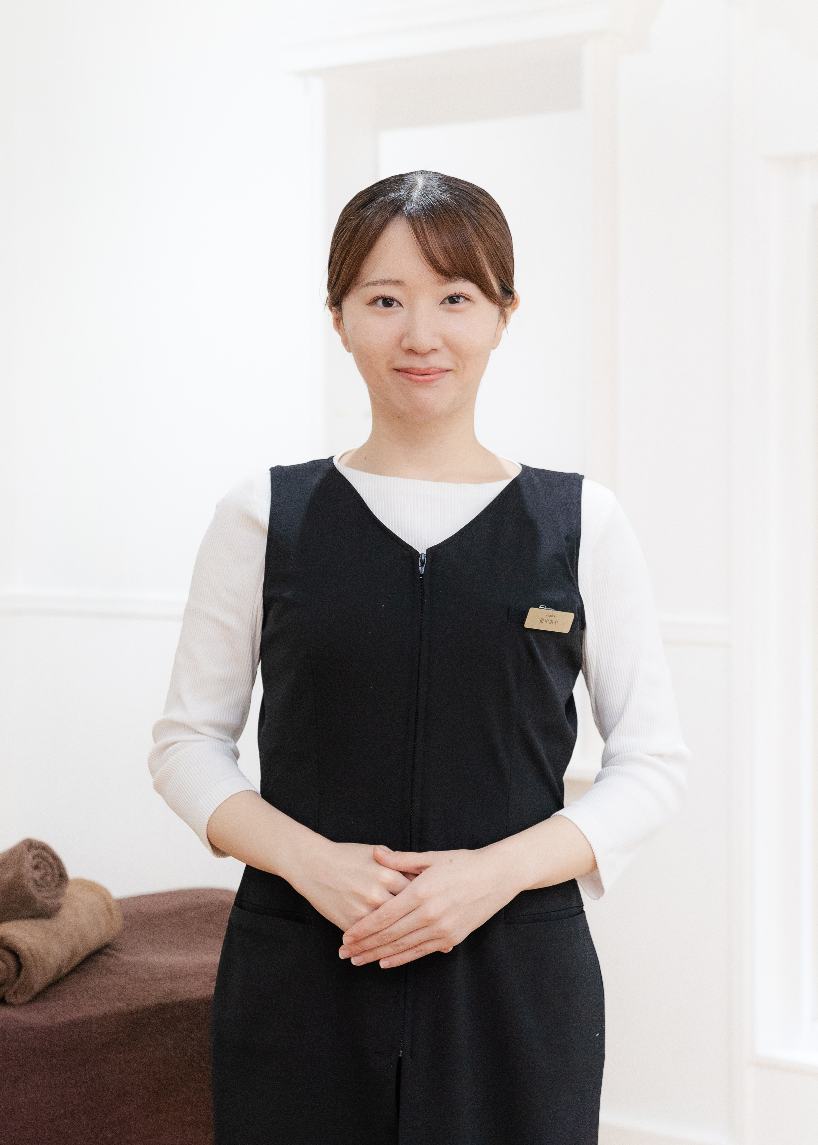 お客様のお肌・お身体のお悩みをお伺いしながら、一番最適な施術とスキンケアをご提案させていただきます。得意な施術はリンパマッサージです!趣味は、寝ること・食べることです!